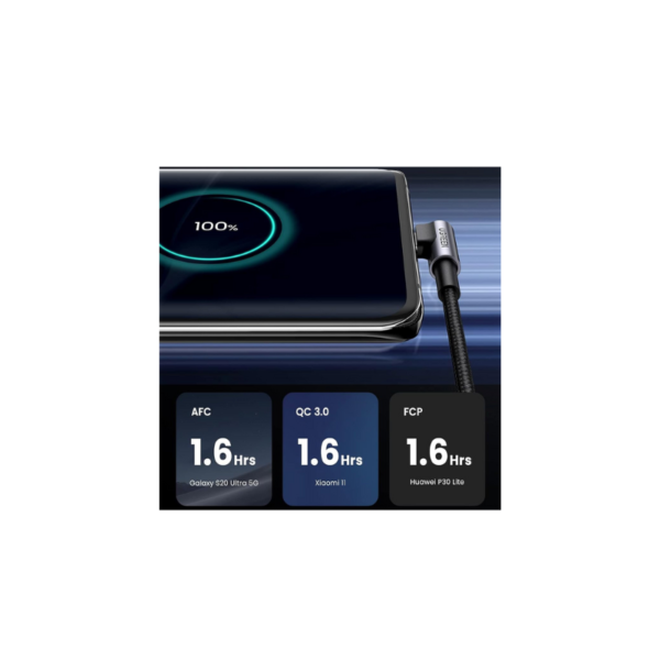 La calidad de fabricación de Ugreen se refleja en cada detalle de este cable, lo que lo convierte en una inversión confiable para tus necesidades de carga diarias. Optimiza tu experiencia tecnológica con un accesorio que se destaca por su rendimiento y durabilidad. Mejora la forma en que cargas tus dispositivos con el Cable Carga Rápida Ángulo 90° USB-a a USB-C de Ugreen.