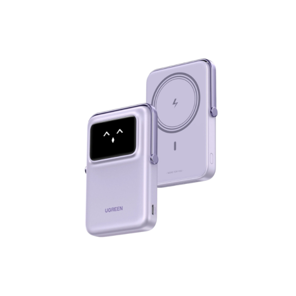 El Power Bank Inalámbrico 10000mAh 20w PB572 de Ugreen en color lila es la solución perfecta para quienes buscan un cargador eficiente y portátil. Su diseño elegante y moderno en tono violeta lo convierte en un accesorio atractivo que destaca en cualquier entorno. Con una capacidad de 10,000mAh, este cargador proporciona suficiente energía para cargar múltiples dispositivos, asegurando que nunca te quedes sin batería.