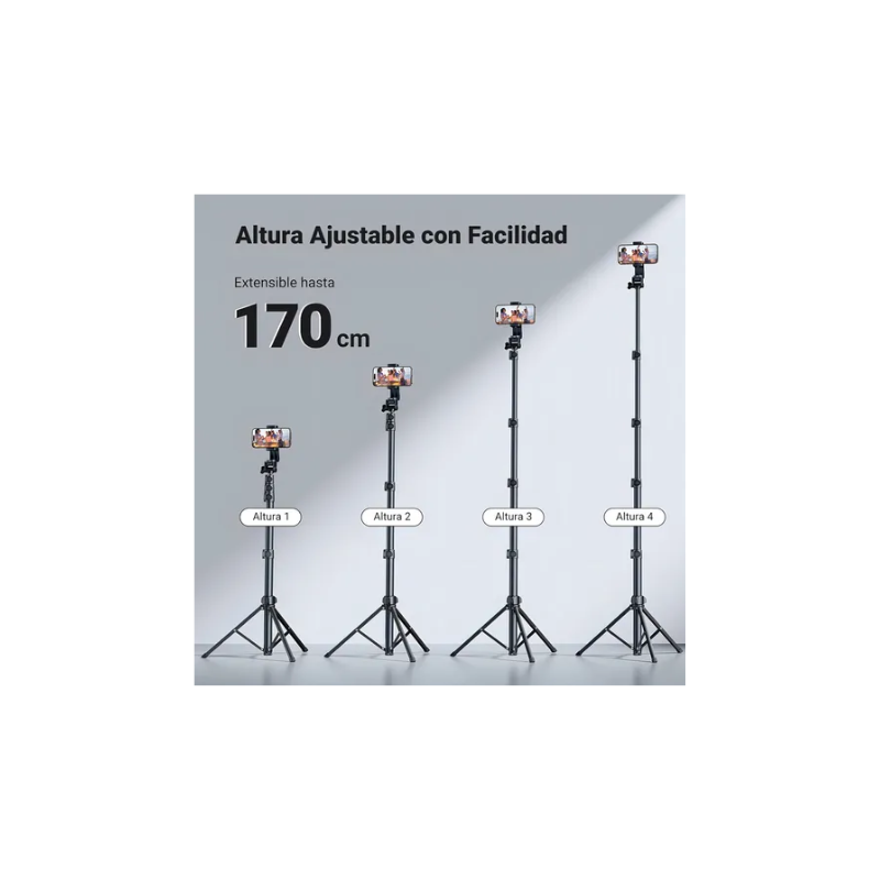 El Ugreen LP680 incluye un control remoto que permitirá disparar fotos de manera conveniente y a distancia, ideal para selfies o tomas grupales. Con un peso de solo 650 g, podrás transportarlo sin problemas a cualquier lugar, asegurando que estés listo para documentar todos tus momentos especiales. Este trípode es la elección perfecta para quienes desean combinar calidad y funcionalidad en su equipamiento fotográfico.